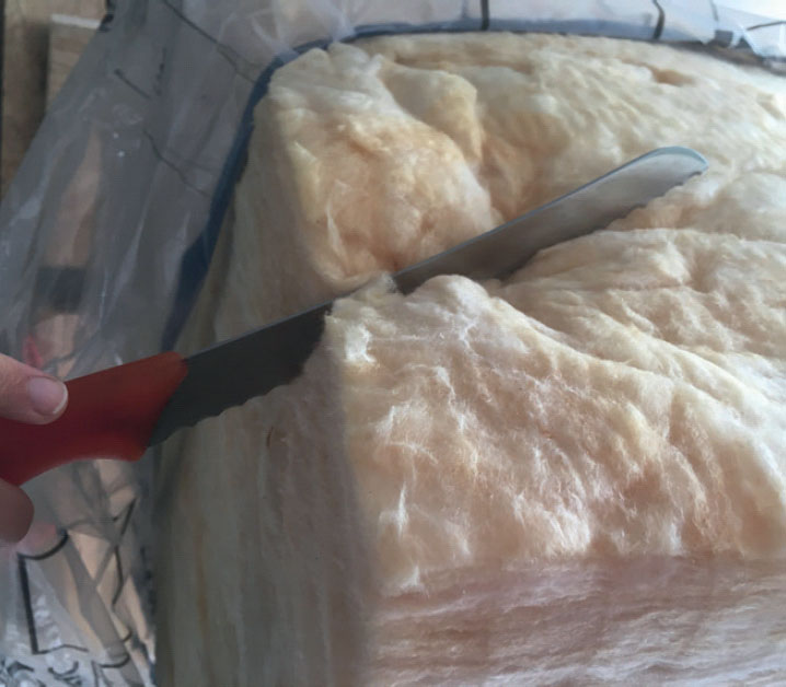 Yhden väliseinän eristämiseen ei kannata hankkia oikeaa eristysveistä. Mineraali- ja selluvillalevyjä voi leikata myös vanhalla leipäveitsellä.