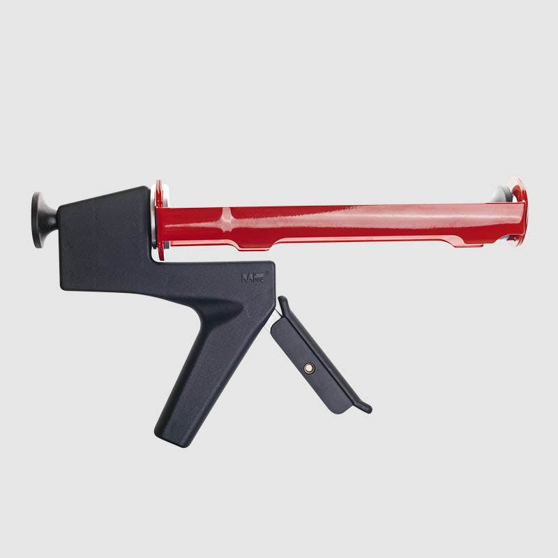 Tämä massapistooli on vankkaa tekoa, ja sitä on helppo käyttää. Putkiloa voi kääntää niin, että työasento on aina hyvä, ja liipaisimessa olevan jarrun ansiosta massaa valuu hukkaan mahdollisimman vähän.