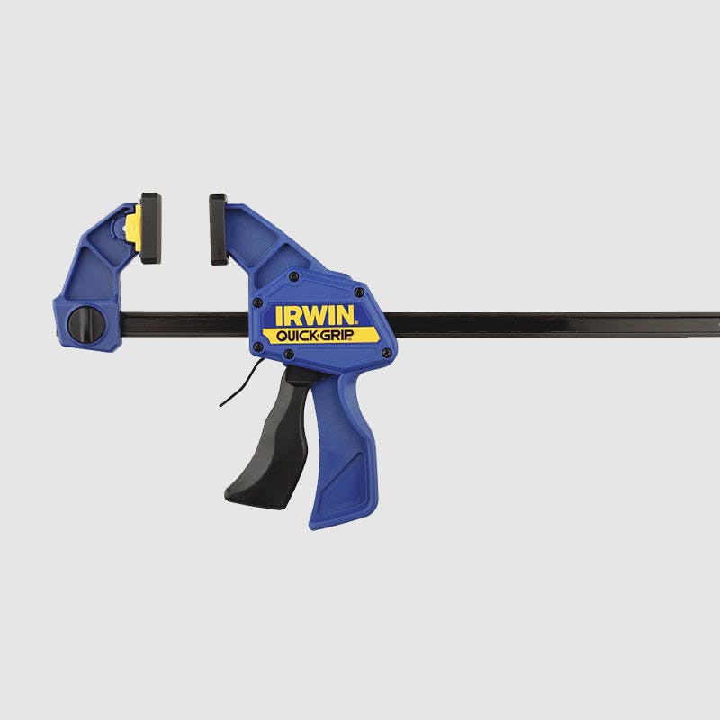 Yksin työskennellessä olisi usein käyttöä lisäkädelle, jolla pitää kiinni laudasta tai säätää tolppaa. Toivo lahjaksi kahta yhden käden puristinta. Ne ovat vain 15 senttiä pitkiä, ja niissä on isot painopinnat, jotkat eivät tee koloja pintoihin. Puristimet on helppo kiristää yhdellä kädellä, ja ne tuottavat 63 kilon paineen. Pikalaukaisinta voi käyttää myös yhdellä kädellä.