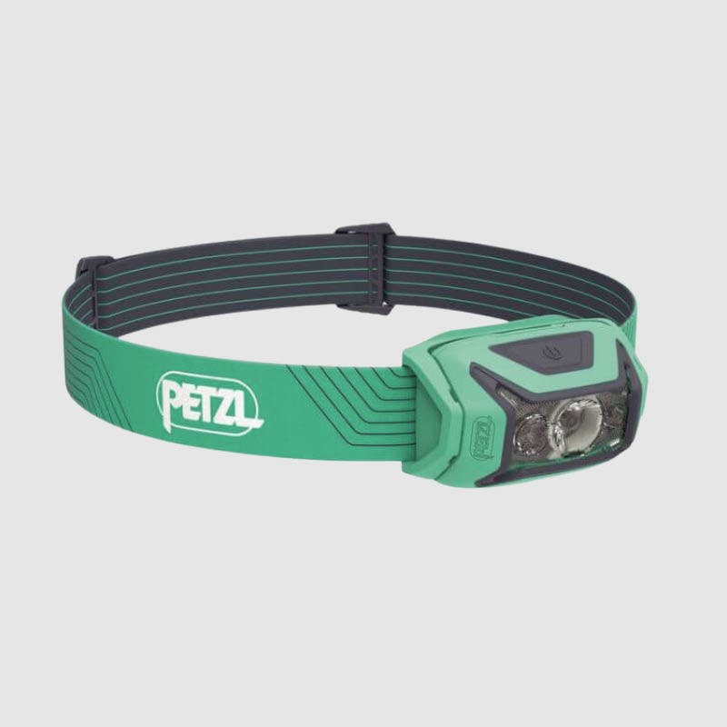 Tämä otsalamppu on ranskalaisen Petzlin tuotantoa, painaa vain 98 grammaa ja loistaa 450 lumenin kirkkaudella. Se kääntyy, ja siinä on kolme eri kirkkautta. Se toimii joko kolmella AAA-paristolla tai ladattavalla CORE-akulla.