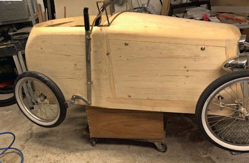 Thomasin autosta piti alun perin tulla melkein tavallinen mäkiauto. Hän päätti hyödyntää mäkiauton perinteistä laatikko rakennetta mutta veistää osat käsin ja yhdistää ne toisiinsa huomaamattomilla liitoksilla. Thomasilla on kalustepuusepän koulutus, joten hän päätti tehdä korista mahdollisimman tyylikkään ja pyöristää sen kulmat.