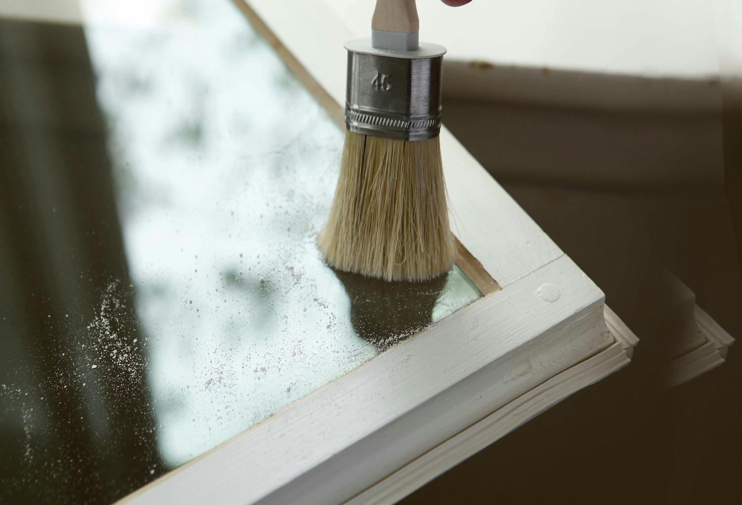 Meillä on todella toimiva ammattilaisten sukkahousuniksi: Hanki liitujauhetta ja tee pieni pussi nailonsukasta. Kun olet levittänyt kitin, töpöttele rasvatahraiset reunat liitupussilla niin, että lasille leviää hieman liitua. Rasva imeytyy liitujauheeseen täysin. Pyyhi sitten lasin reunat suurehkolla, puhtaalla ja pehmeällä siveltimellä. Pyyhi myös kitti siveltimellä. Näin kitti tasoittuu ja painuu tiiviisti lasiin.