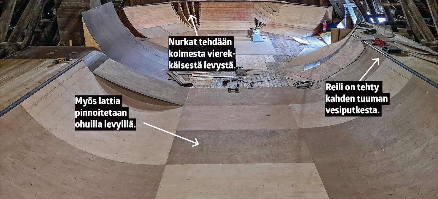 Pinnoituslevyt saavat olla korkeintaa 6 milliä paksuja, jotta ne taipuvat rampin muotoon.